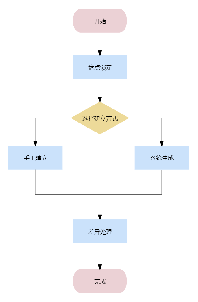 盘点方式分为手工建立和系统生成两种。手工建立是对仓库内部分物料进行单独盘点,手动选择盘点哪些物料,使用更灵活。系统生成是对仓库内所以物料进行盘点,一般整体盘点时候使用。首先介绍手工建立方式的盘点: