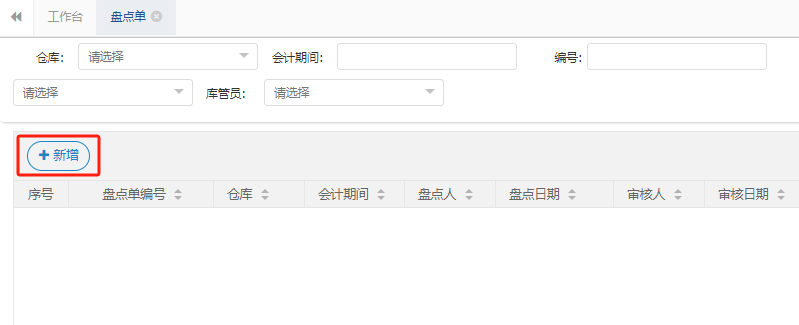 然后打开盘点单功能,直接点击新增按钮。