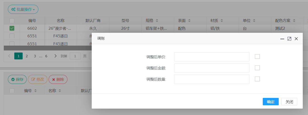 其中单价和金额限制不允许同时调整,参考调账规则: