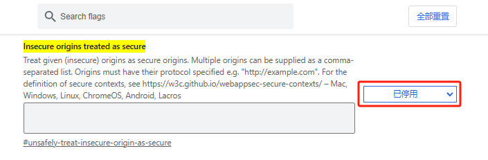 此时插件就可以正常打印,若还是无法使用。同样输入,将该条目改成停用。或者将网址输入下边。chrome://flags/#unsafely-treat-insecure-origin-as-secure