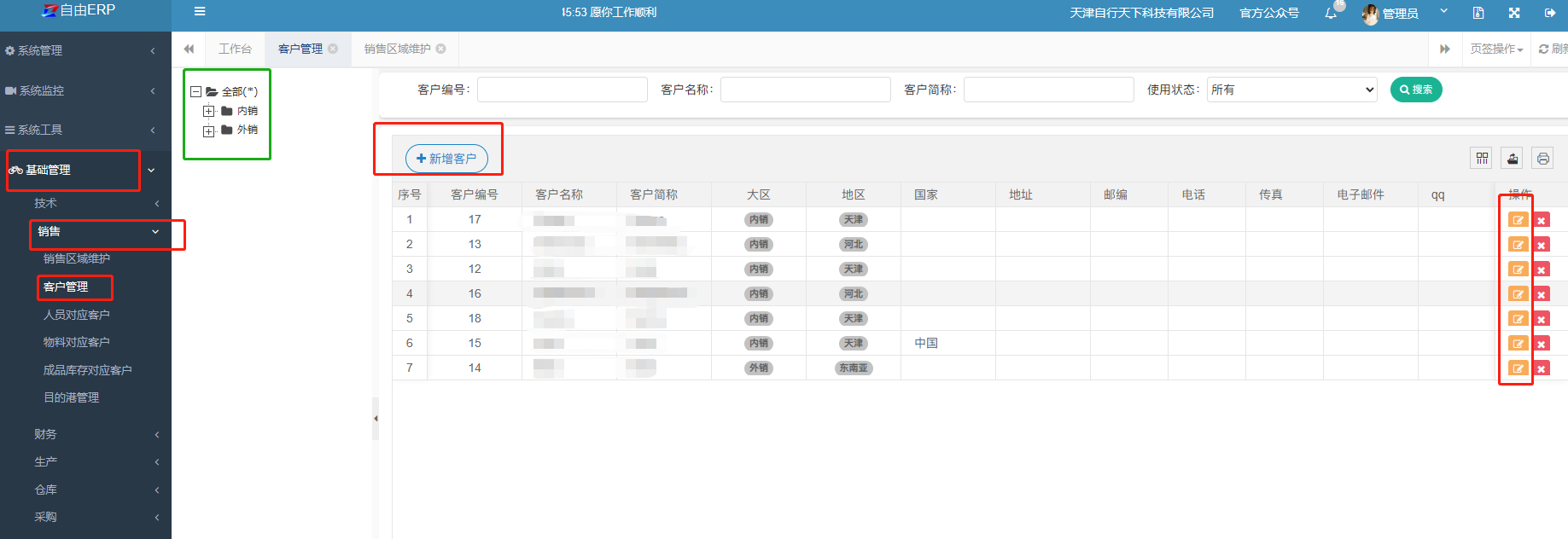 1、客户区域维护(基础管理-销售-销售区域维护)