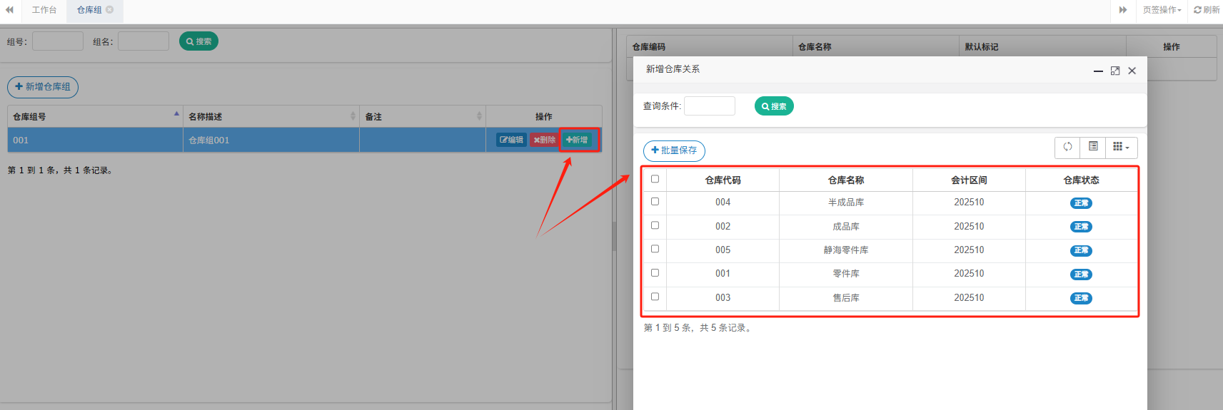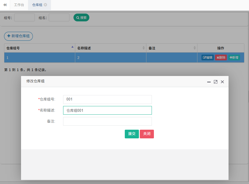 功能路径:【基础管理】>【仓库】>【仓库组】